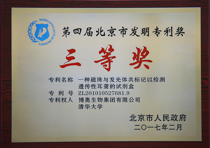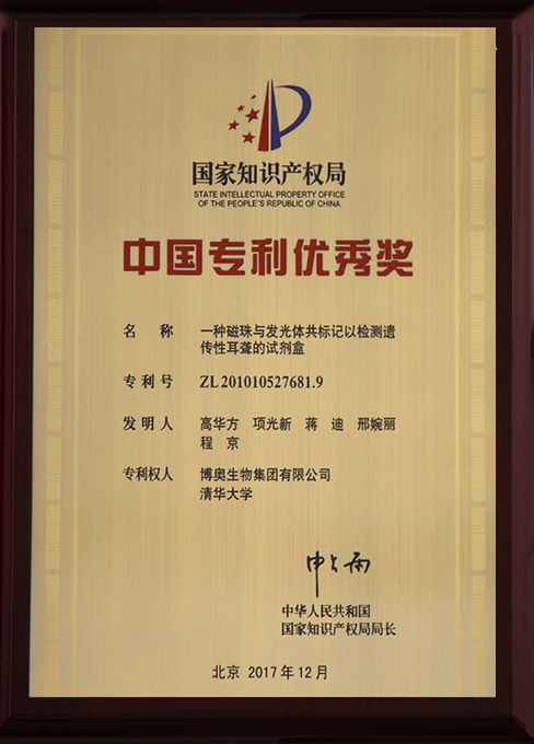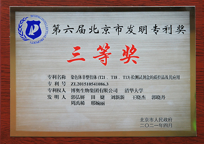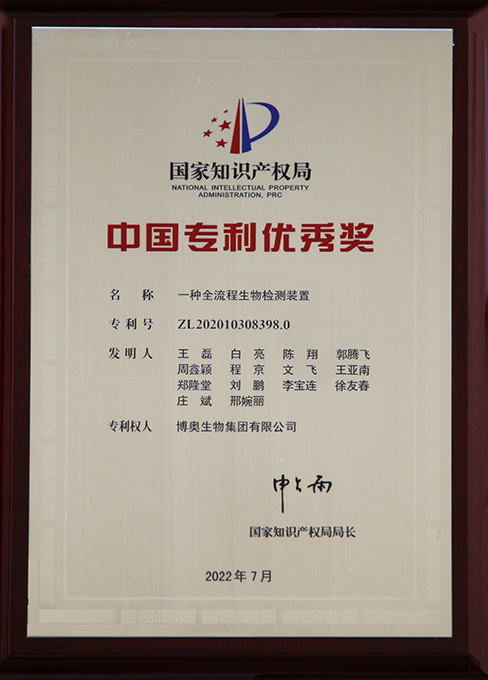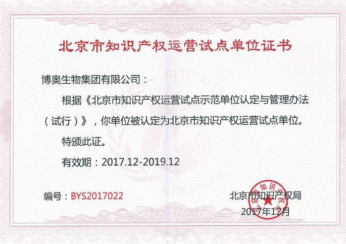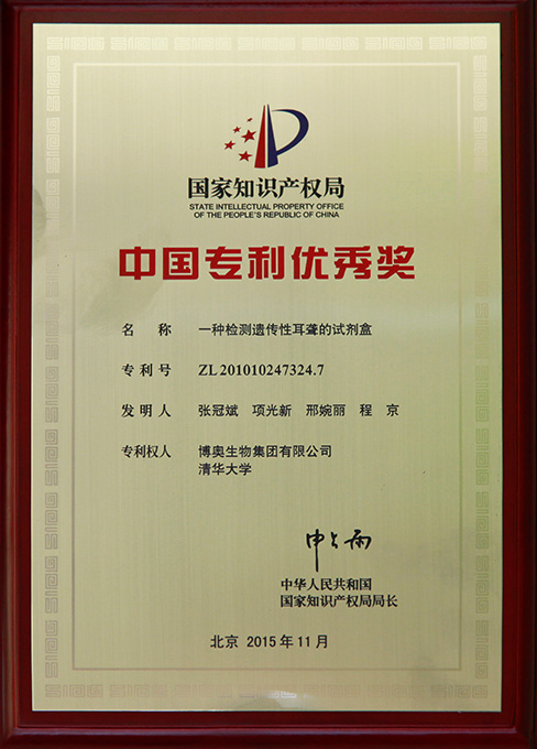 歷年來,博奧共榮獲中國專利優(yōu)秀獎10次,北京市發(fā)明專利二等獎1次,北京市發(fā)明專利三等獎4次。博奧先后被評為國家知識產(chǎn)權(quán)示范企業(yè)、北京市知識產(chǎn)權(quán)示范單位(現(xiàn)已更名為”北京市知識產(chǎn)權(quán)優(yōu)勢單位“)、北京市知識產(chǎn)權(quán)運營試點單位、工業(yè)與信息化部工業(yè)企業(yè)知識產(chǎn)權(quán)運用試點企業(yè)等知識產(chǎn)權(quán)榮譽資質(zhì)。