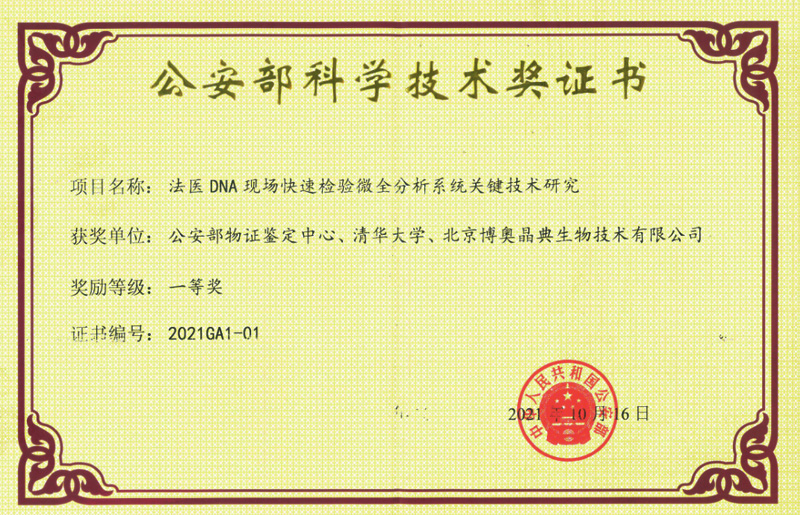 “便攜式全集成法醫(yī)DNA物證現(xiàn)場(chǎng)快速檢驗(yàn)微全分析系統(tǒng)”榮獲公安部科學(xué)技術(shù)一等獎(jiǎng)