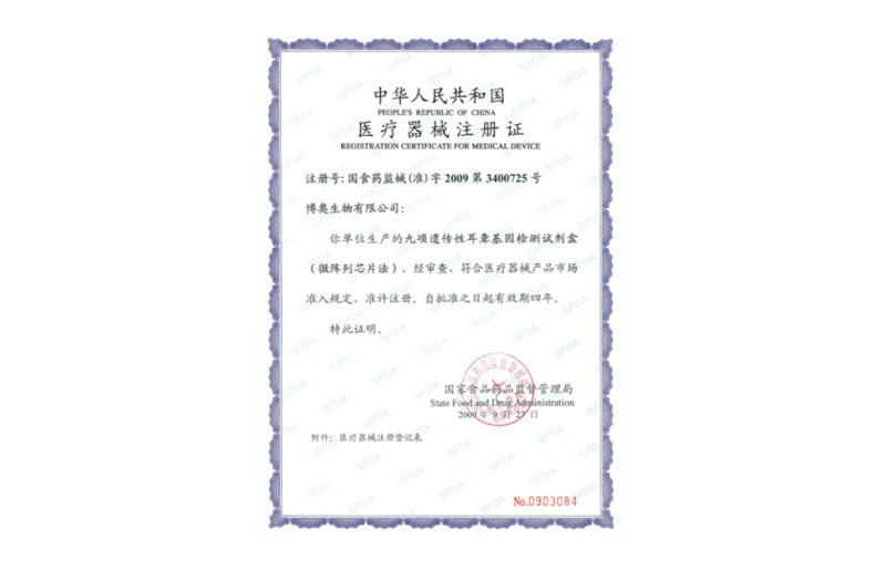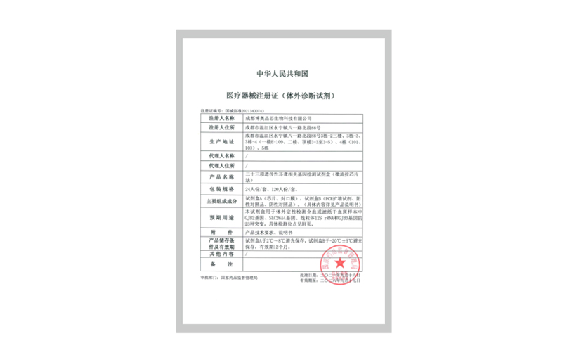 二十三項(xiàng)遺傳性耳聾相關(guān)基因檢測(cè)試劑盒(微流控芯片法)獲國(guó)家醫(yī)療器械注冊(cè)證