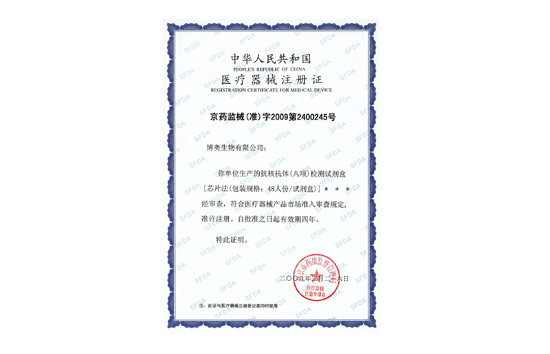 抗核抗體(八項(xiàng))檢測(cè)試劑盒(芯片法)獲國(guó)家醫(yī)療器械注冊(cè)證