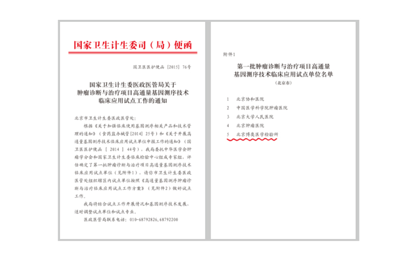 國(guó)家衛(wèi)生計(jì)生委批準(zhǔn)博奧檢驗(yàn)成為第一批腫瘤診斷與治療項(xiàng)目高通量基因檢測(cè)技術(shù)臨床試點(diǎn)單位