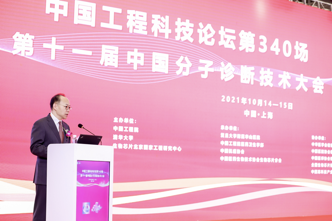 2021年10月14日,“中國(guó)工程科技論壇第340場(chǎng)第十一屆中國(guó)分子診斷技術(shù)大會(huì)”在上海市盛大開(kāi)幕。會(huì)議由中國(guó)工程院、清華大學(xué)、生物芯片北京國(guó)家工程研究中心主辦,復(fù)旦大學(xué)附屬華山醫(yī)院、中國(guó)工程院醫(yī)藥衛(wèi)生學(xué)部、中國(guó)抗癌協(xié)會(huì)、中國(guó)醫(yī)藥生物技術(shù)協(xié)會(huì)生物芯片分會(huì)承辦,中華醫(yī)學(xué)會(huì)檢驗(yàn)醫(yī)學(xué)分會(huì)、中國(guó)醫(yī)師協(xié)會(huì)檢驗(yàn)醫(yī)師分會(huì)、中國(guó)醫(yī)院協(xié)會(huì)臨床檢驗(yàn)管理專(zhuān)業(yè)委員會(huì)、全國(guó)生物芯片標(biāo)準(zhǔn)化技術(shù)委員會(huì)、中國(guó)高科技產(chǎn)業(yè)化研究會(huì)協(xié)辦。