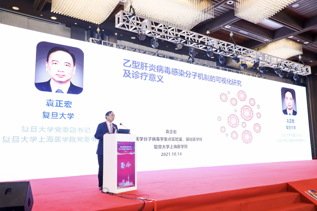 復(fù)旦大學(xué)黨委副書(shū)記、復(fù)旦大學(xué)上海醫(yī)學(xué)院黨委書(shū)記袁正宏教授作了題為《乙型肝炎病毒感染分子機(jī)制的可視化研究及診療意義》的專(zhuān)題報(bào)告。報(bào)告介紹了研究團(tuán)隊(duì)利用基于 bDNA 的熒光原位雜交結(jié)合免疫熒光技術(shù)及 CRISPR-Tag 活細(xì)胞實(shí)時(shí)熒光失蹤技術(shù),系統(tǒng)性地建立了在體外細(xì)胞和組織系統(tǒng)進(jìn)行原位雜交加熒光、顯色檢測(cè)HBV核酸和蛋白可視化的方法。通過(guò)可視化技術(shù),研究團(tuán)隊(duì)在亞細(xì)胞水平直接觀察到HBV病毒組分,揭示了HBV病毒部分關(guān)鍵復(fù)制環(huán)節(jié)的細(xì)節(jié),填補(bǔ)了HBV生活史一些關(guān)鍵環(huán)節(jié)的時(shí)空信息。在組織水平觀察到病毒核酸與蛋白的分布特征,反應(yīng)肝臟內(nèi)HBV病毒的生活特征。課題組開(kāi)發(fā)的可視化技術(shù)可以用來(lái)監(jiān)測(cè)慢乙肝患者抗病毒治療后病毒蛋白質(zhì)和核酸,尤其 cccDNA 的清除情況,有助于臨床醫(yī)生制訂更好的治療方案,并可為指導(dǎo)開(kāi)發(fā)新藥物提供幫助。